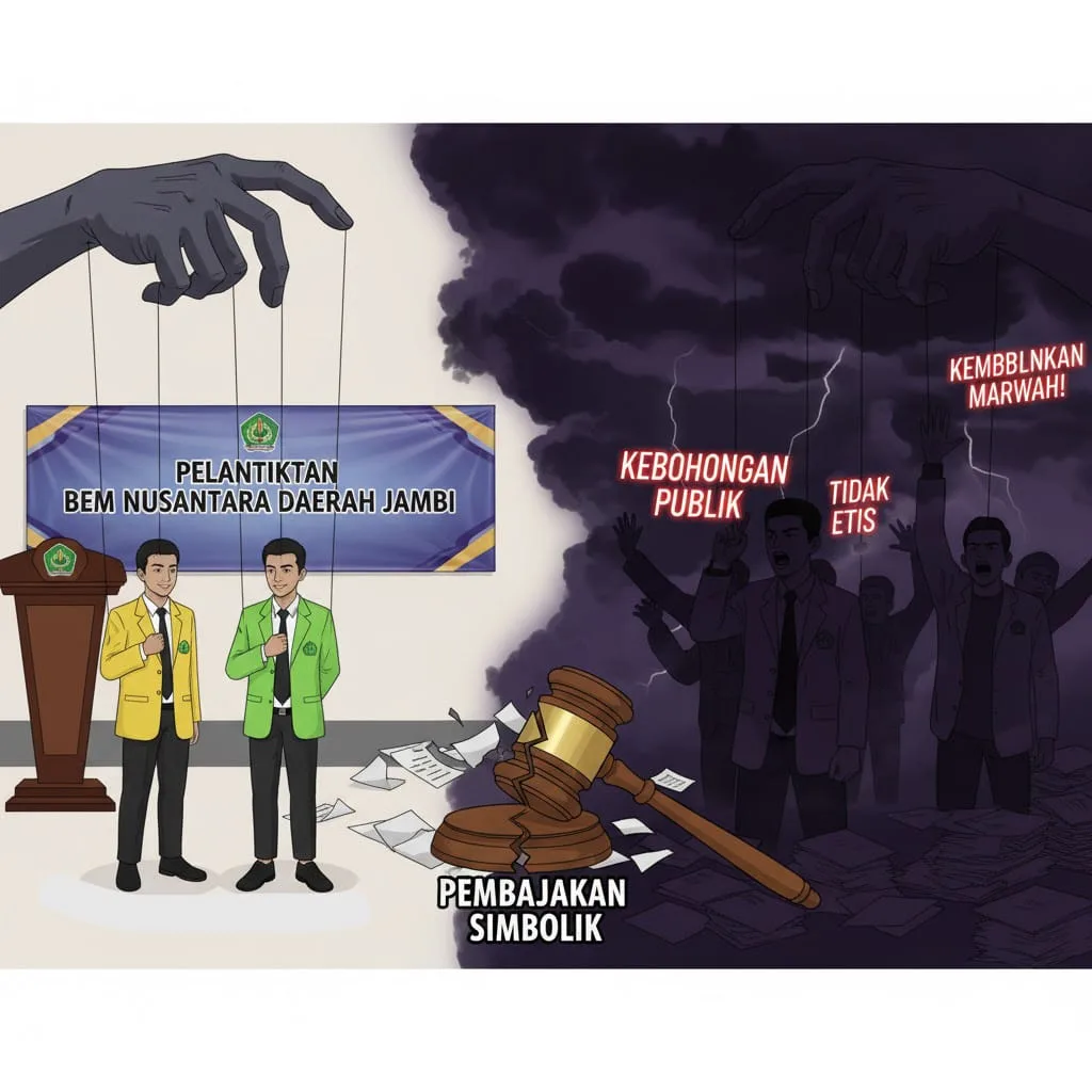 Jambi-Gelombang kritik mengalir deras menjelang pelantikan pengurus baru BEM Nusantara Jambi yang dijadwalkan digelar pada Sabtu, 25 Oktober 2025.