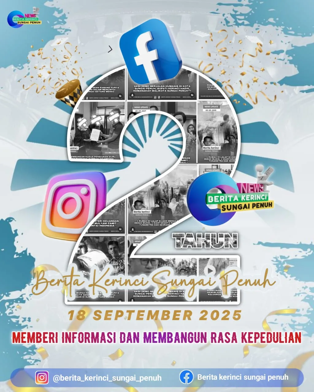Sungai Penuh-Di tengah hiruk-pikuk arus informasi yang tak terbendung, sebuah nama telah tumbuh menjadi mercusuar bagi masyarakat Kerinci dan Sungai Penuh. Tepat pada 18 September 2025 ini, media sosial Berita Kerinci Sungai Penuh merayakan dua tahun kehadirannya, sebuah perjalanan yang tak hanya sekadar menyebarkan kabar, tetapi juga menanamkan kepedulian dan mengawal fakta.