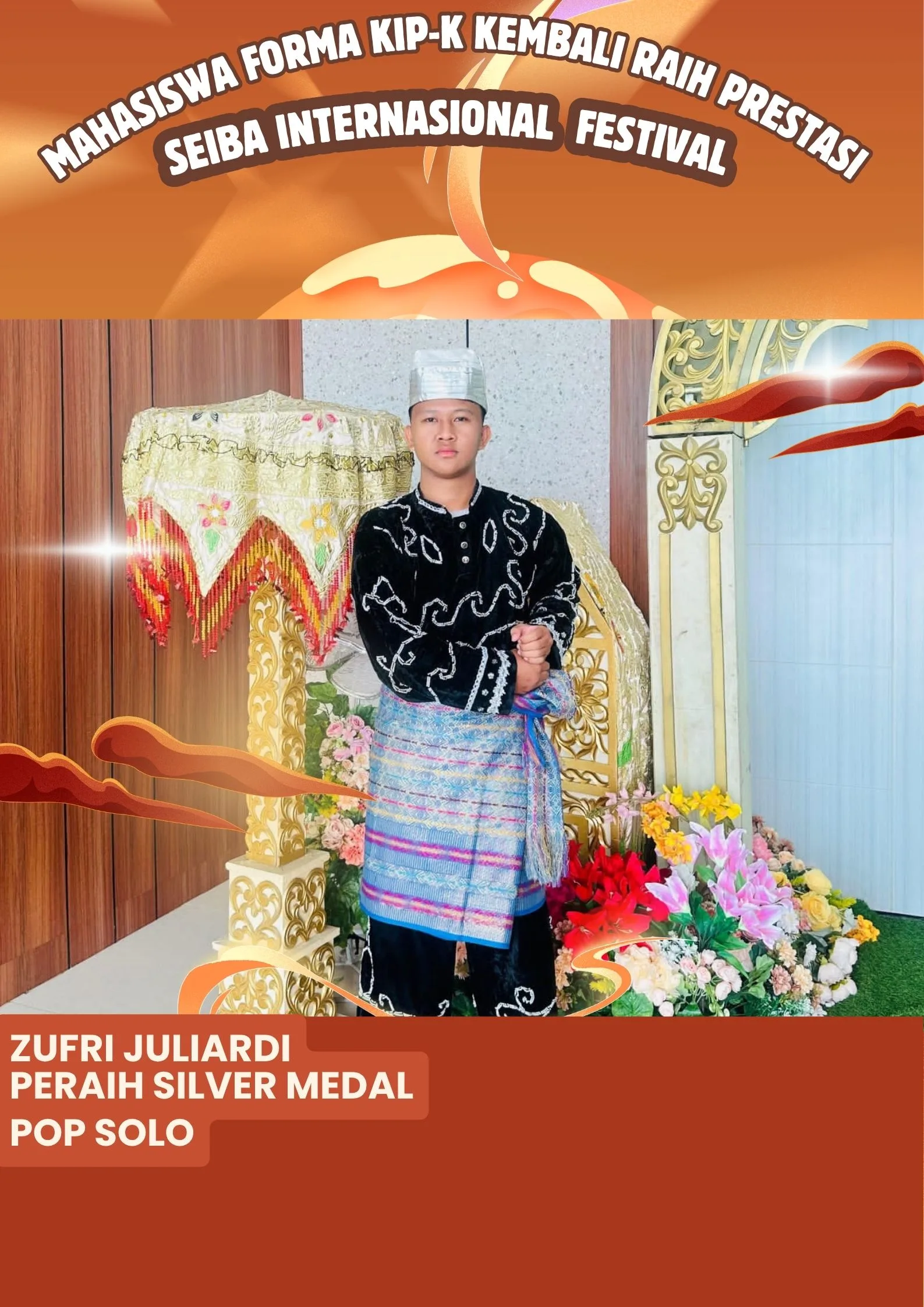Zufri Juliardi merupakan Mahasiswa KIP-K IAIN Kerinci yang mendapatkan penghargaan Silver medal dalam ajang lomba Pop Solo mengutarakan suatu kebanggan dapat mengharumkan nama IAIN Kerinci di kancah internasional hal tersebut merupakan suatu prestasi yang sangat luar biasa selama menjadi Mahasiswa Penerima Manfaat FORMA KIP-K IAIN Kerinci